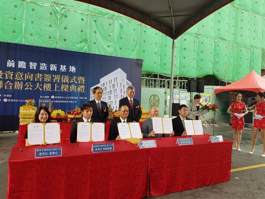 經濟部長沈榮津今日至高雄加工區,主持「前瞻智造中心-投資意向書簽署儀式暨聯合辦公大樓上梁典禮」,樂業集團張董事長親至園區簽署投資意向書,正式簽署預約進駐,標準廠房預計於110年8月完工,期望以嶄新智慧綠能環境及高科技尖端設備,研發製造更高端之醫療器材,造福更多民眾。
