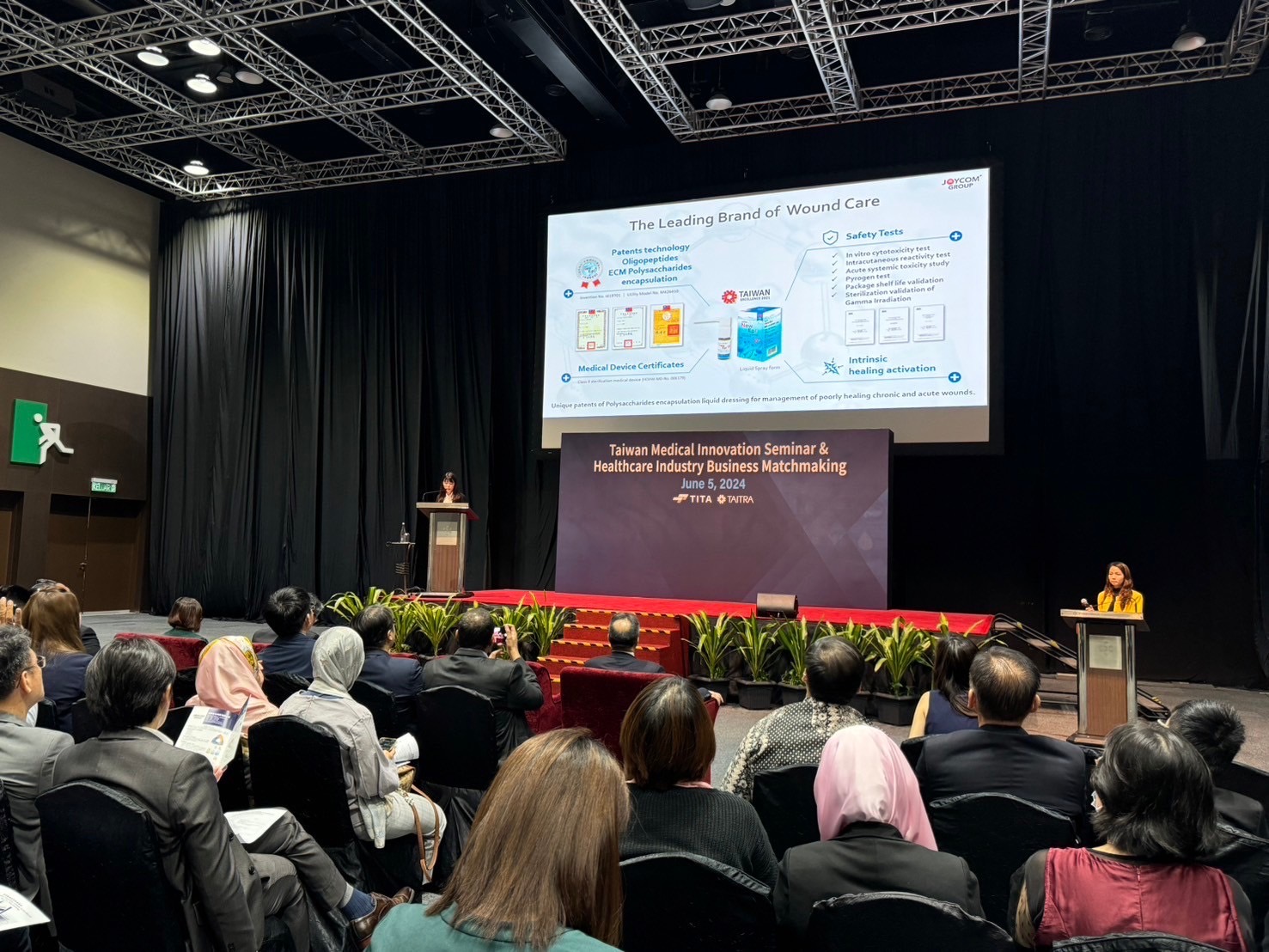 在展會期間,我們不僅展示了公司的產品,更參與臺灣醫療創新論壇(2024 Taiwan Medical Innovation Seminar & Healthcare Industry Business Matchmaking)。在這個論壇上,順利地發表了NewEpi速原水性創傷敷料簡報,並與來自各地的專業人士進行了市場交流。