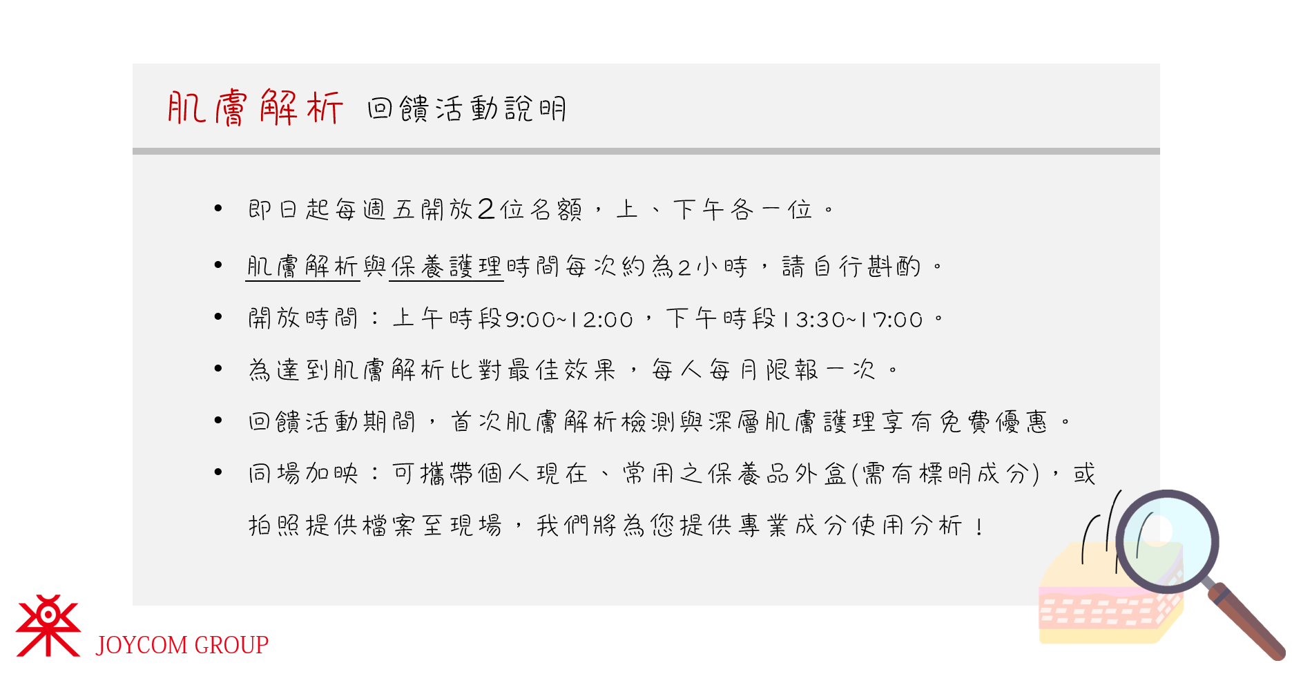 你想要透過更科學的方式,了解自己的肌膚結構嗎?這是在皮膚科醫師及特定診所才有的專業,不知道如何科學保養與想要調理肌膚的朋友們有福了,歡迎所有舊雨新知邀請朋友一起來報名!時間有限錯過可惜,歡迎大家來預約參加!