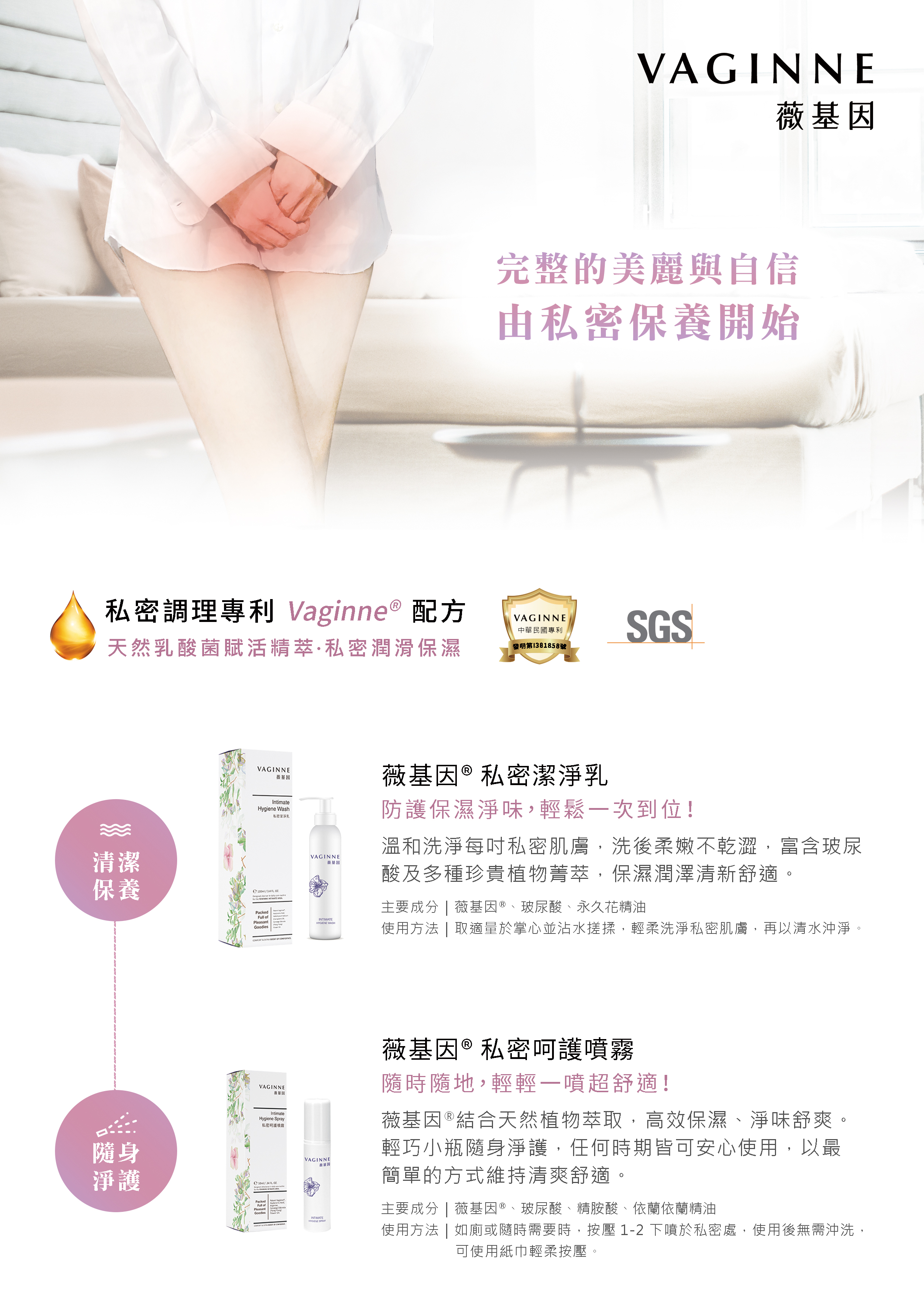VAGINNE 薇基因® 私密潔淨乳 溫和洗淨每吋私密肌膚,洗後柔嫩不緊繃。富含玻尿酸及多種珍貴植物菁萃,保濕潤澤清新舒適。 感謝 MamiGuide 專欄報導 > 孕媽咪指南 > 懷孕大小事 孕期私密保養,預防乙型鏈球菌感染! Buy Now Buy Now 立即購買 蝦皮購物