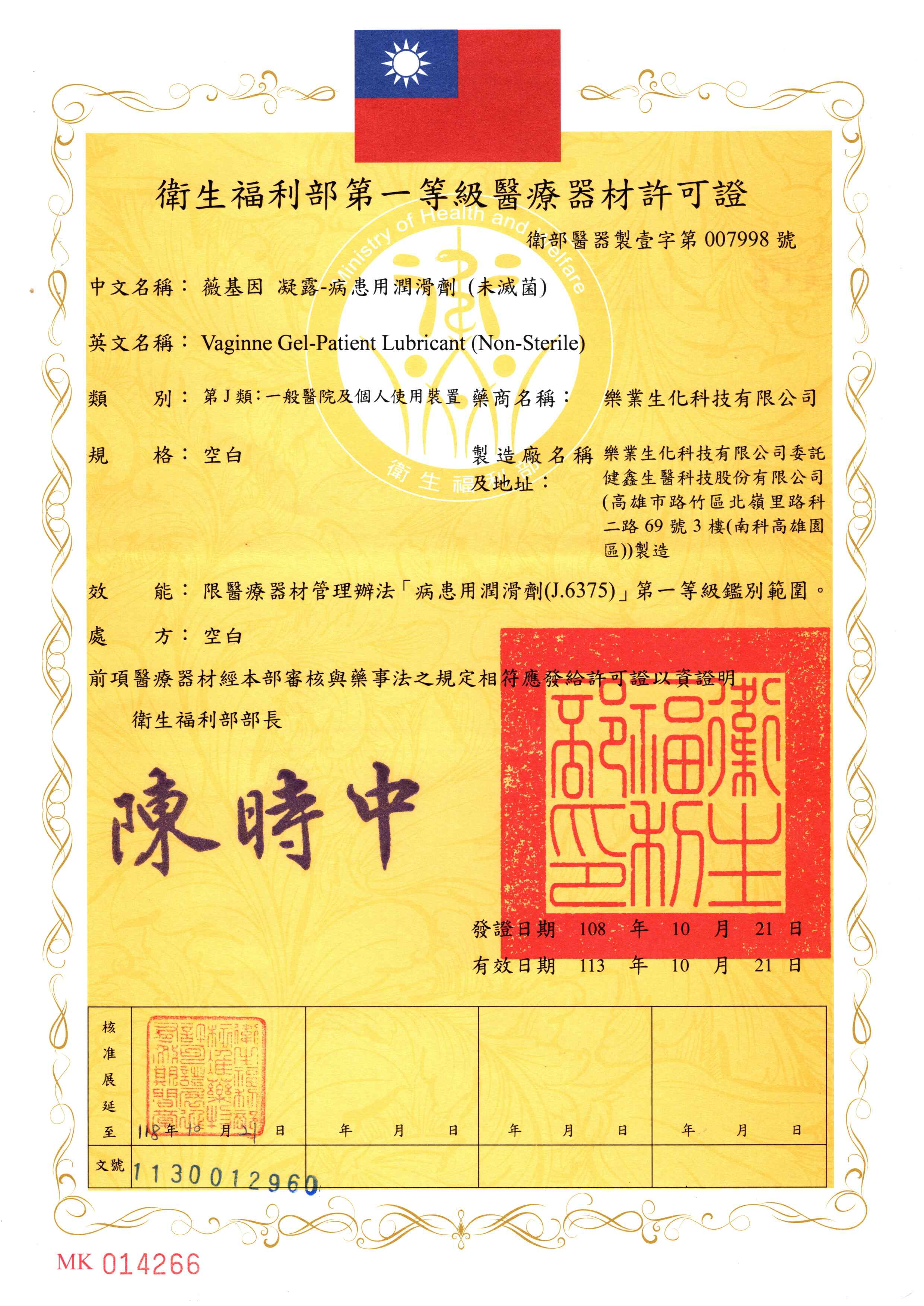 【Class I Medical Device (MOHW-MD-(I)-No.007998)】